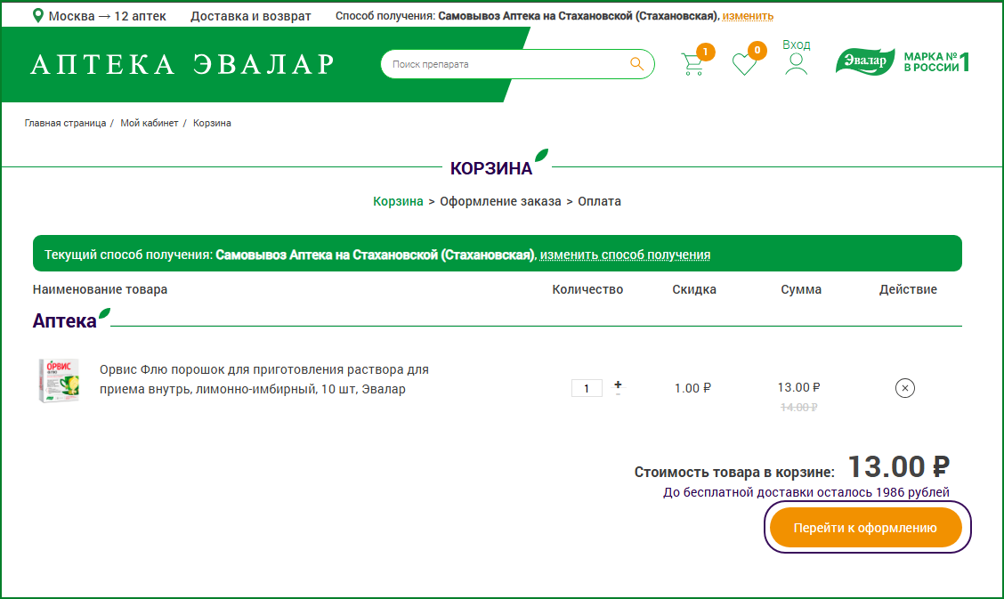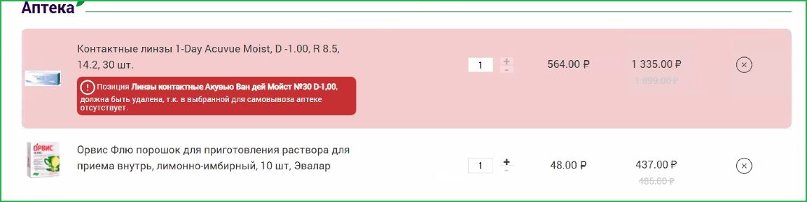 - Перед оформлением заказа убедитесь, что все товары доступны в выбранной аптеке