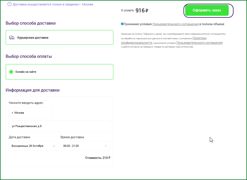 также этот телефон необходим для того, чтобы курьер мог связаться с вами.