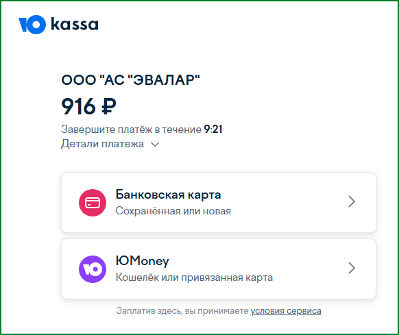Для оплаты будете перенаправлены на страницу сервиса безопасного приема платежей.