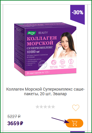 2. Положите выбранный товар в корзину, нажав на кнопку корзины на карточке товара.